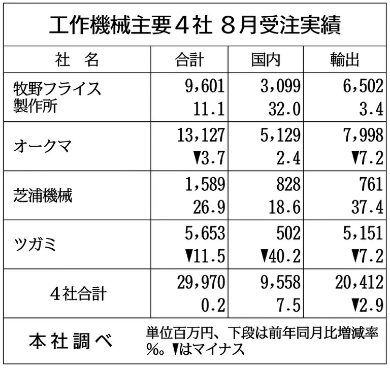 8月日本四大機(jī)床企業(yè)訂單解析:中國市場復(fù)蘇乏力